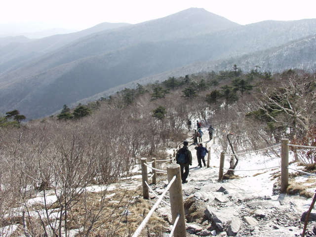 눈이 꽁꽁 얼어붙은 태백산 등산로를 아이젠 차고 올랐다가 내렸습니다.